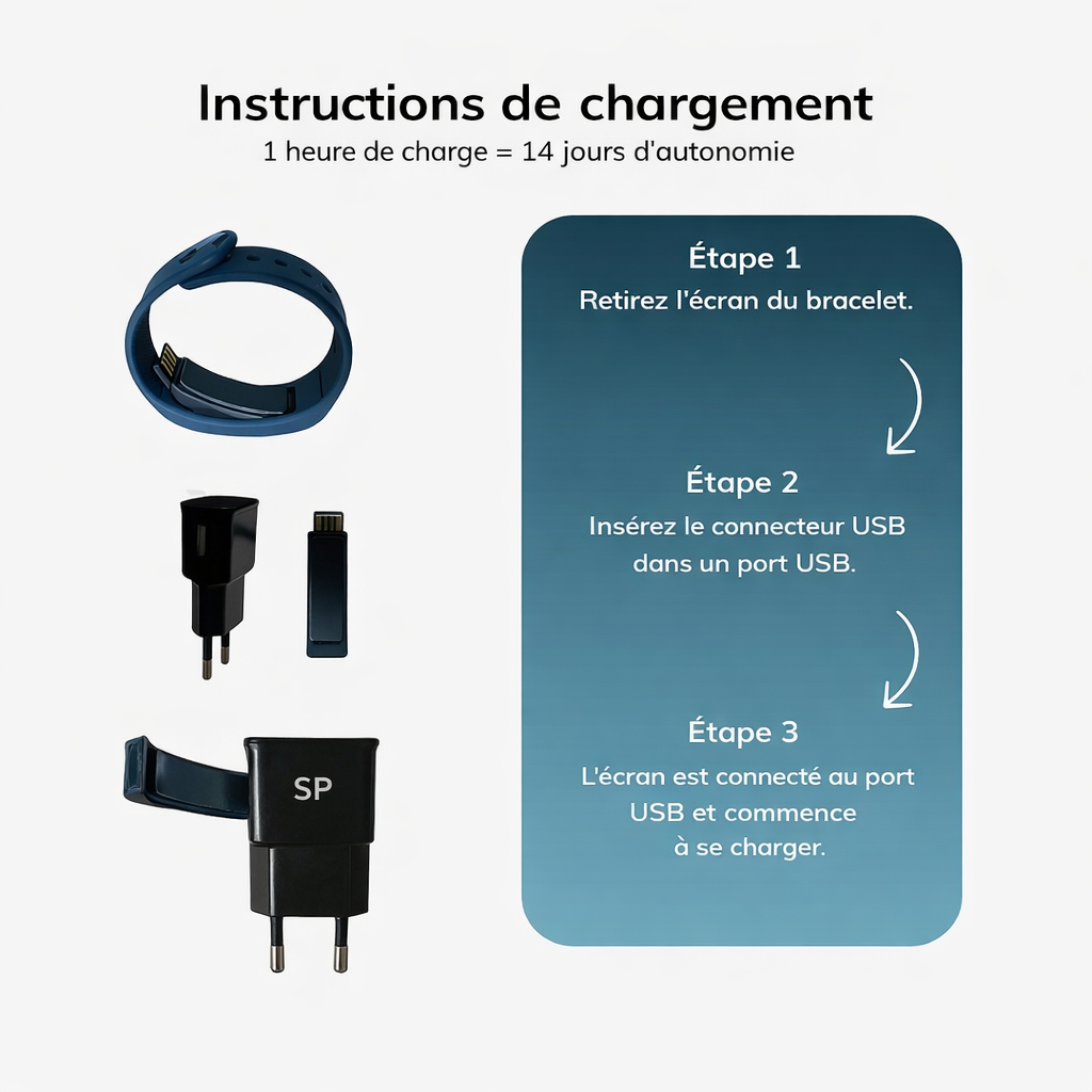 Il vous suffit de régler l'heure à laquelle vous souhaitez vous réveiller, de porter le bracelet, et celui-ci s'activera à l'heure prévue.